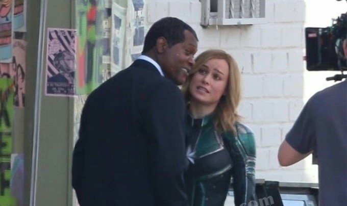 Enquanto Vingadores – Guerra Infinita estreia nos cinemas, o Marvel Studios continua o trabalho, com as gravações de Capitã Marvel, que chega em 2019, ocorrendo atualmente em Atlanta, na Geórgia, nos EUA. E o Hollywood Pipeline flagrou um momento bem interessante das filmagens: a heroína interagindo com um Nick Fury mais jovem, pois o longa se passa na década de 1990.