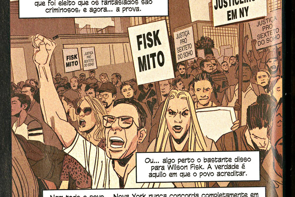 A Folha de São Paulo deu destaque ao lançamento de uma HQ do Demolidor no Brasil: na edição, o vilão Wilson Fisk é eleito prefeito de Nova York e passa a perseguir os super-heróis da cidade por meio de políticas públicas repressoras e o uso de fake news. Na tradução brasileira, numa cena em que há uma manifestação a favor do criminoso (que é conhecido Rei do Crime), um dos cartazes traz os dizeres “Fisk Mito” tal qual aconteceu na campanha de Jair Bolsonaro para a presidência do Brasil.