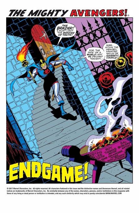 Claro, as “pistas” do site são mínimas, mas vamos lá: a Marvel Comics irá reeditar três histórias dos Vingadores dentro de sua linha True Believers e em todas o Cavaleiro Negro estará presente. E mais uma dessas histórias se chama justamente Endgame (o título original de Ultimato), que é a Avengers 71, de 1969, escrita por Roy Thomas e desenhada por Sal Buscema, que é a história em que o Cavaleiro Negro, Danny White (já havia outras versões do personagem, inclusive, um vilão) ingressa nos Vingadores como membro pela primeira vez.