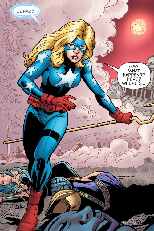 Já Átomo e Stargirl são menos conhecidos, e mais jovens, e formam um casal nas HQs. Ela (também chamada de Estrelar ou Sideral) pode vir a ser mais conhecida a partir de agora, pois há planos de uma série live action com a heroína no DC Universe, o canal de streaming da editora que já exibe Titans/ Titãs.