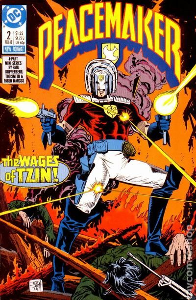 Por fim, o último membro é o Pacificador, um personagem até certo ponto similar com o Pistoleiro. Nos quadrinhos, o primeiro é um tipo de justiceiro que na luta pela paz (daí seu nome) decide usar a luta armada. Originalmente criado na editora Charlton Comics, em 1966, o Pacificador foi adquirido, juntamente com todo o elenco daquela editora, pela DC Comics no início dos anos 1980, e ele é o personagem-base para Alan Moore criar o Comediante em Watchmen, que era uma versão dos heróis da Charlton, mas tão radical que o autor e a DC decidiram reformular, para salvar os heróis tradicionais para outros usos. Na DC, o personagem ganhou uma minissérie em 1988, mas apareceu pouco depois disso.