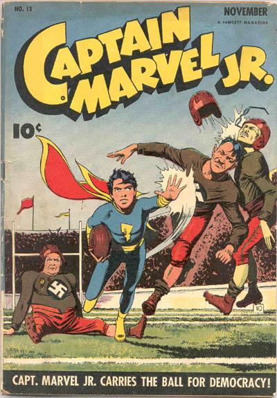 Foi só o aperitivo para que Whiz Comics 25 (1941) trouxesse a estreia do Capitão Marvel Jr.: o amigo de Batson, Freddy Freeman, que tem um problema nas pernas e usa muletas quase se afoga e o herói tenta transferir seus poderes para ele. Dá certo parcialmente, e Freddy se torna um herói, usando uma variação azul do uniforme, mas sem virar um adulto – porque foi apenas uma fração do poder – e se mantendo como um adolescente quando transformado.