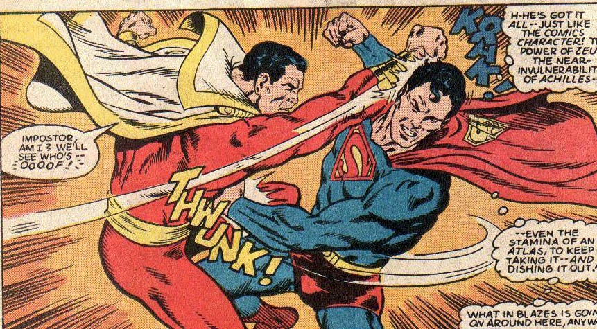 E também criou a curiosa situação na qual Marvel e DC publicavam dois heróis com o nome Capitão Marvel, inclusive, com ambos na cor vermelha!