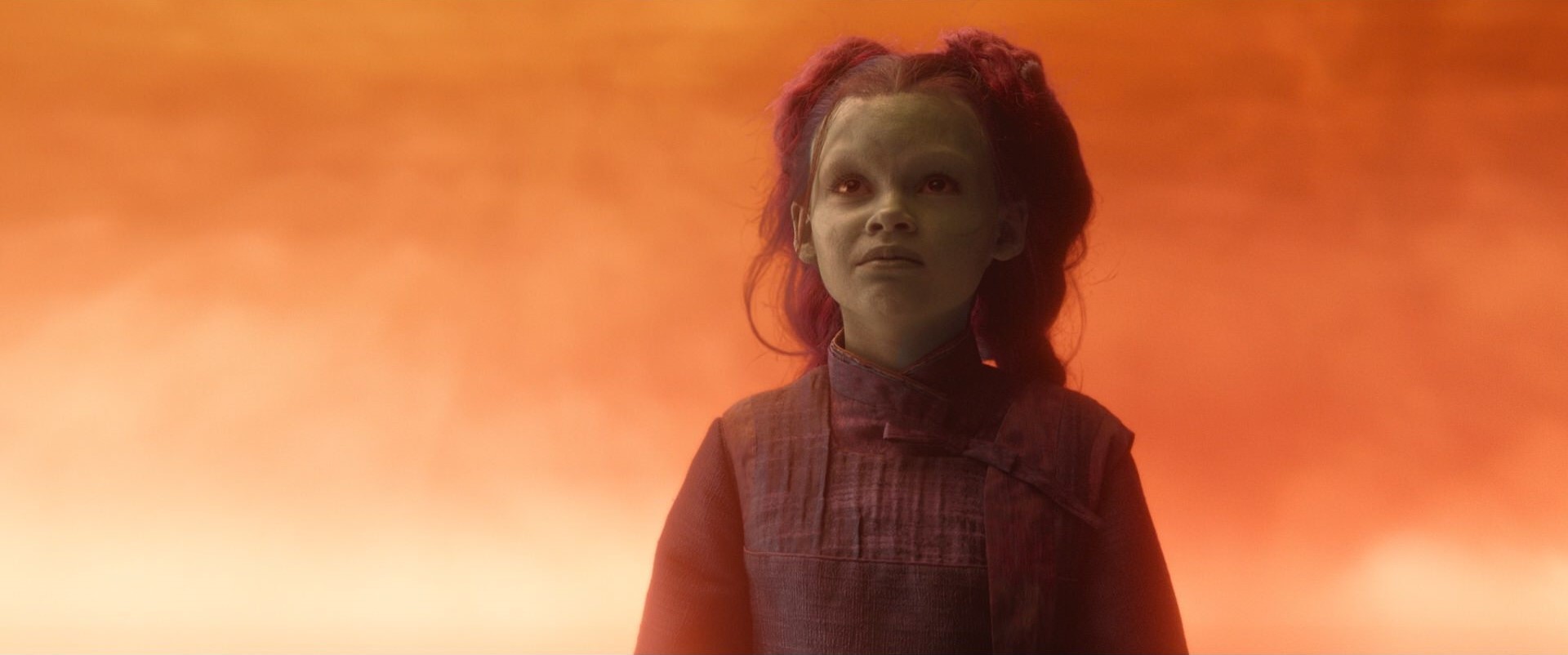 Parece razoável. Afinal, quando Thanos encontra com a Gamora criança, já tínhamos visto a menina na cena em que o titã louco a recrutava em meio ao extermínio de seu povo. Não era o caso com a filha de Stark, que é uma criança de quatro anos de idade ao longo do filme quase todo.