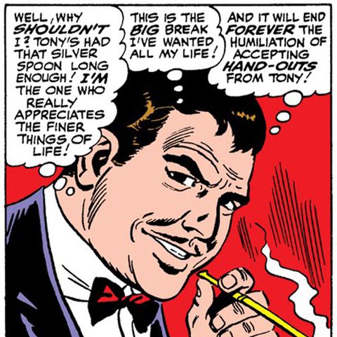 Nos quadrinhos, até existe um Morgan Stark, um homem, que é primo de Tony Stark e um tipo meio criminoso, que apareceu poucas vezes e deu um pouco de dor de cabeça ao Homem de Ferro. O personagem surgiu em Tales of Suspense 68, de 1965, criado por Al Hartley e Don Heck, e na trama é revelado que seu pai havia sido sócio de Howard Stark, mas aberto mão da sociedade, o que enchia Morgan de ressentimento contra o primo rico e famoso. Ele se associa com o mafioso Conde Nefária, que seria um vilão de maior importância tanto ao Homem de Ferro quanto aos próprios Vingadores.