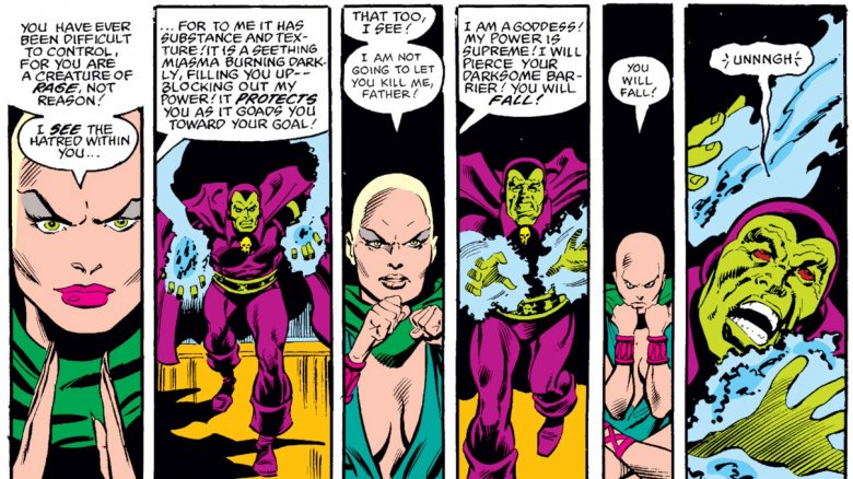 Já a filha de Drax, nos quadrinhos, é a Serpente da Lua, que tem poderes telepáticos e foi membro dos Vingadores nos anos 1970 e início dos 80. Porém, nas HQs ambos são terráqueos, enquanto nos filmes Drax é um alienígena.