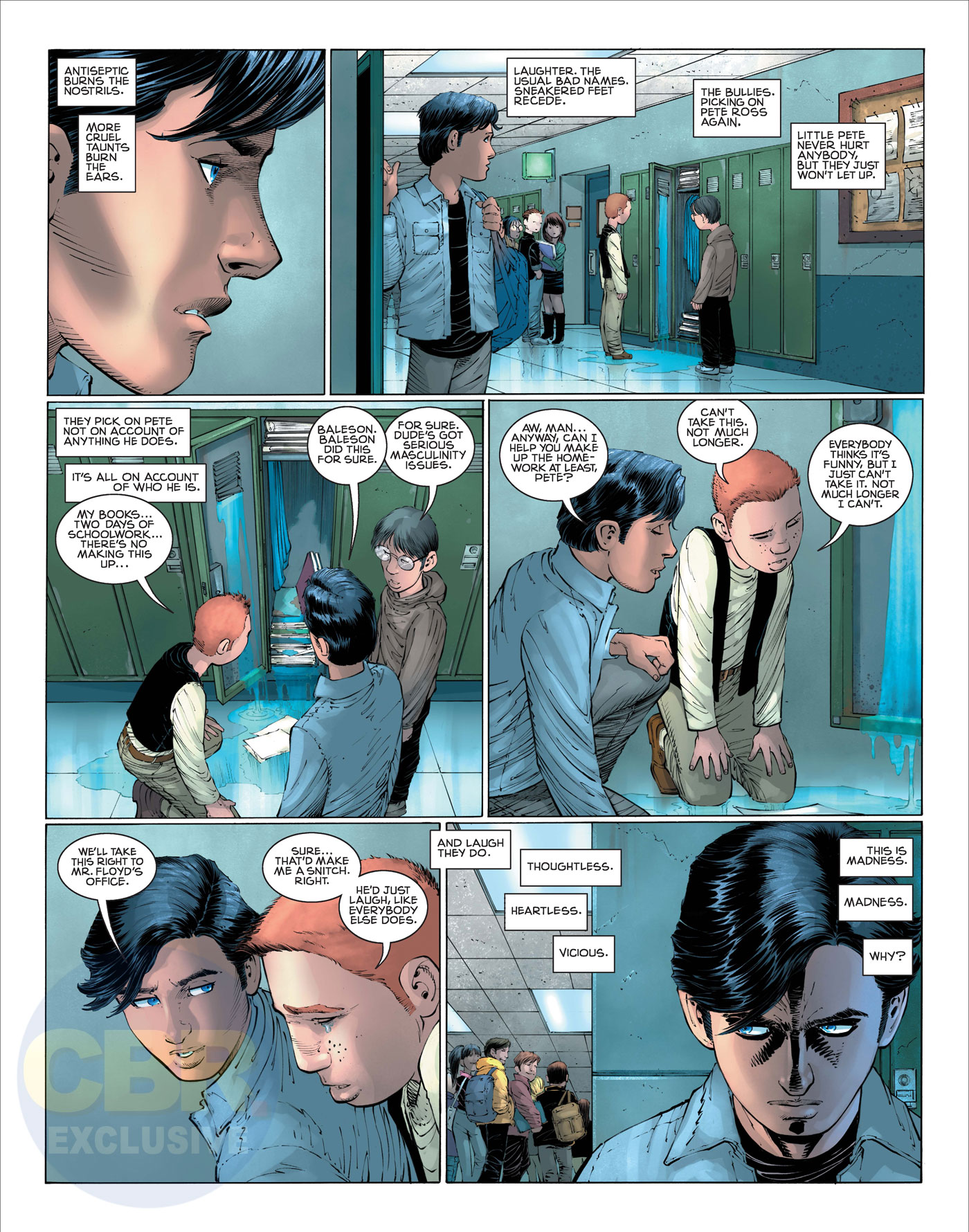 As imagens prévias mostram o tom da história, com um texto ágil e diálogos afiados de Miller e a narrativa visual fluida de Romita. A trama não traz uma origem do Superman no sentido clássico – já houveram tantas – mas será um conto sobre o amadurecimento do herói desde sua infância até o momento em que veste seu uniforme e se transforma no maior herói da Terra.