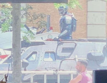 As filmagens de Viúva Negra prosseguem com bastantes cenas externas que rendem muitas imagens capturadas por paparazzis, mas desta vez, algo mais interessante foi visto. Daniel Richtman, que costuma dar bons furos no tema, exibiu em seu Twitter três imagens de um misterioso vilão mascarado pilotando um tanque. Será o Treinador?