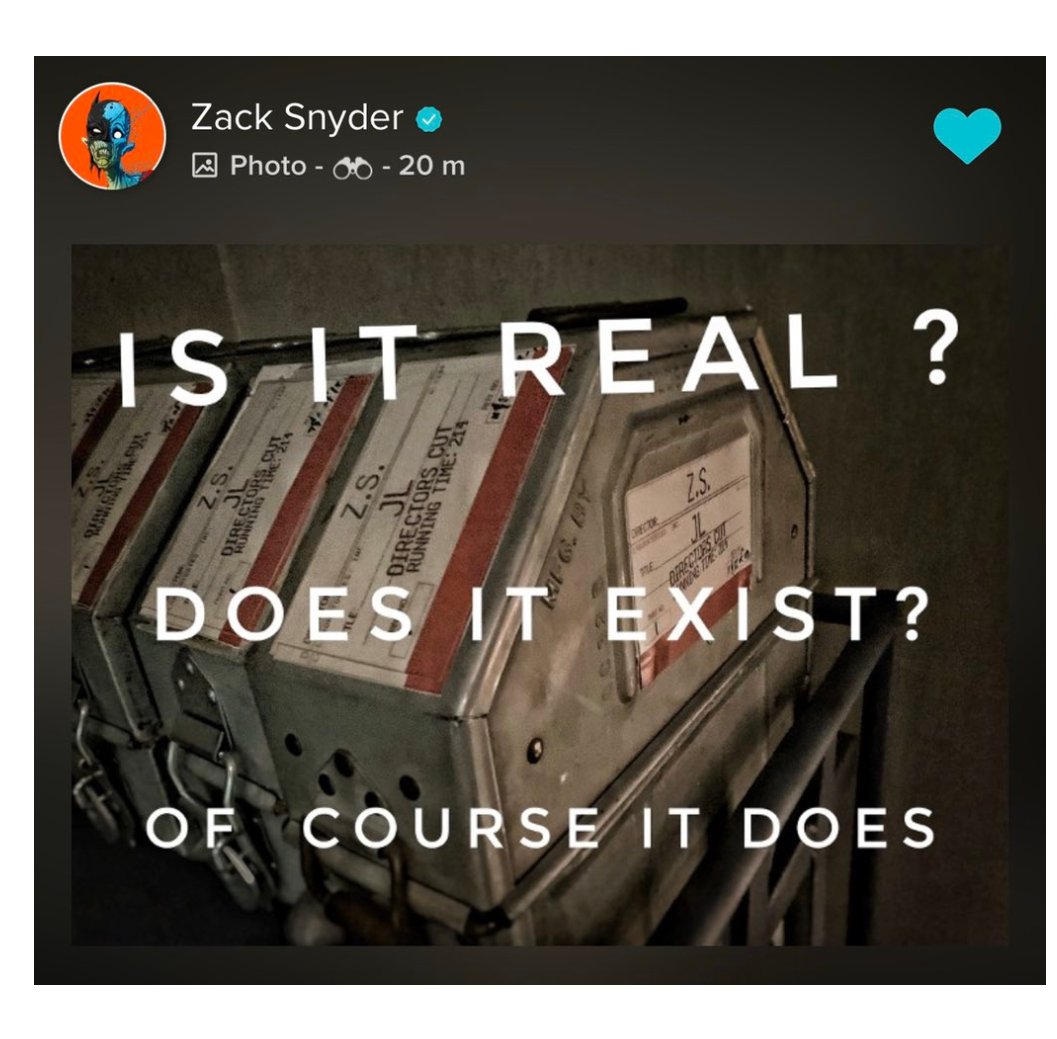 Zack Snyder é um profícuo usuário da rede Vero e após meses lançando imagens de suas filmagens de 2016 para Liga da Justiça, alimentando os rumores da existência (e do lançamento) de sua versão do filme, finalmente, foi direto à questão! Com uma imagem dos discos rígidos das gravações, o diretor colocou a legenda: “É real? Existe? Claro que sim”.