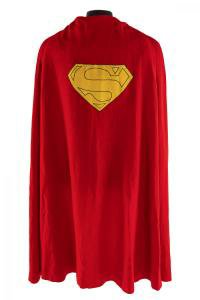 A capa é em tecido vermelho vivo e tem o símbolo do S em amarelo com costura preta. Ela veio com alguns documentos comprobatórios, como a edição de Superman 331, de 1978, que anunciou o concurso pelo qual um dos leitores ganharia a capa usada nas filmagens e uma carta do vice-presidente da DC Comics, Sol Harrison, datada de 27 de fevereiro de 1979 e destinada ao vencedor.