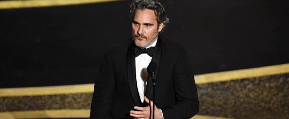 Em seu discurso, Phoenix mais uma vez chamou a atenção para as causas as quais defende, como a diminuição da desigualdade e o meio ambiente, em particular, a não alimentação de carne animal. Ele ainda pediu desculpas por ser uma pessoa difícil e agradeceu por ter ganho várias segundas chances em sua carreira, destacando que devemos ser mais atentos às mudanças de comportamento das pessoas. Também lembrou de seu irmão, o ator River Phoenix, que morreu de uma overdose no início dos anos 1990, citando uma letra de música que ele escreveu.