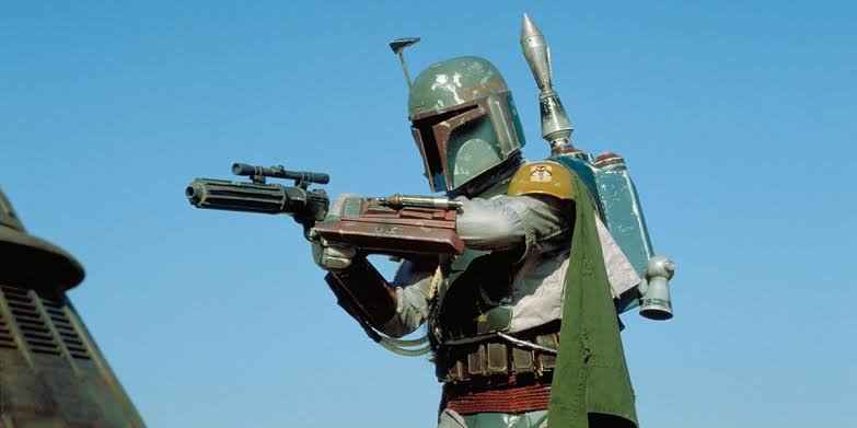 Boba Fett usa uma armadura madaloriana tal qual o personagem título da série do Disney+, que fez enorme sucesso. O personagem surgiu em Império Contra-Ataca e em O Retorno de Jedi, ambos em papéis pequenos, mas que geraram interesse dos fãs, ampliados depois em livros e quadrinhos.