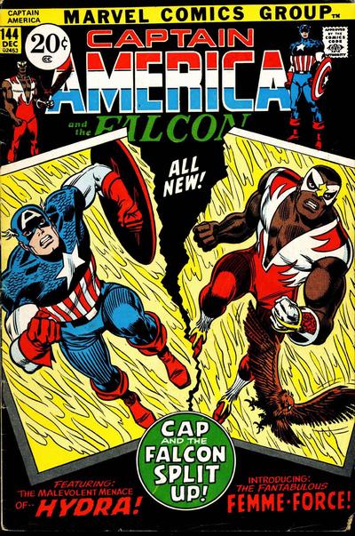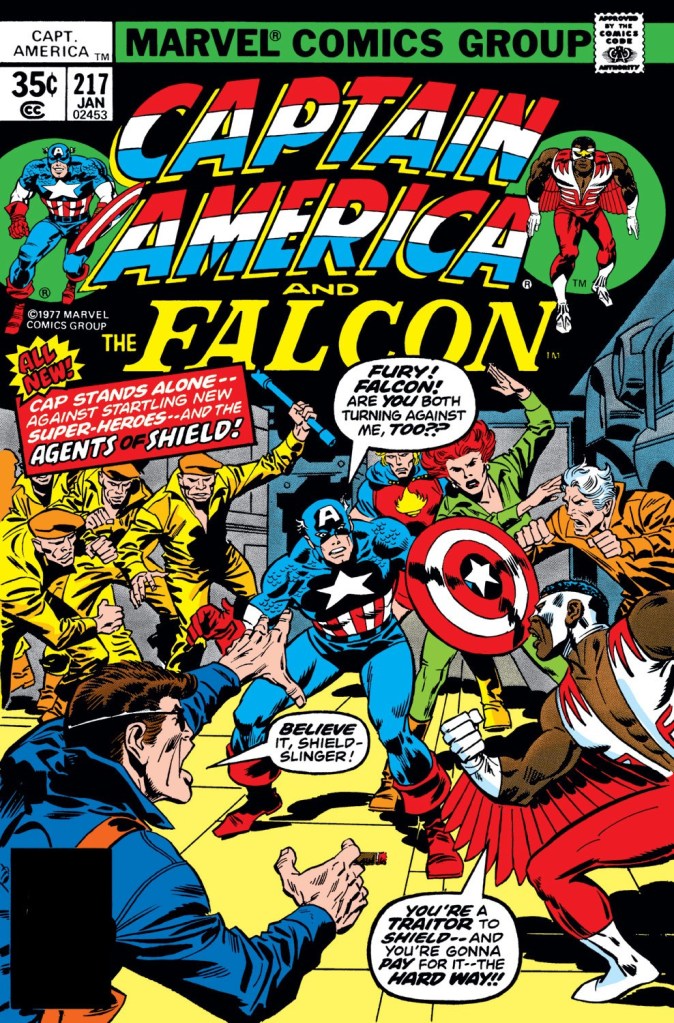 Em Captain America and the Falcon 217, de 1978, escrita por Roy Thomas e Don Glut e desenhada por John Buscema, quando Capitão América, Falcão e Nick Fury enfrentam uma grande ameaça à SHIELD, Fury tem a ideia de formar um esquadrão de super-agentes da SHIELD e o Falcão é convidado a tomar parte. Sam aceita e isso termina sua parceria de “tempo integral” com o Capitão após 10 anos de histórias conjuntas. Captain America and the Falcon aparece pela última vez na edição 222, e dali em diante, a revista volta a se chamar apenas Captain America.