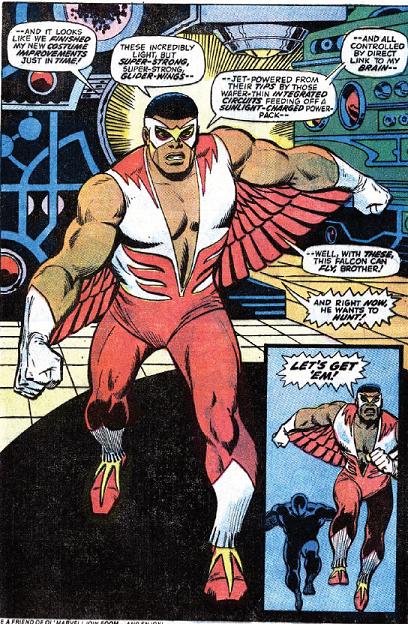 Mas faltava ainda o primeiro super-herói realmente afrodescendente, então, veio o Falcão, criado por Stan Lee e Gene Colan, em Captain America 117, de 1969. Segundo Colan contou numa entrevista publicada no volume Marvel Masterworks dedicado ao personagem que foi dele a ideia original de criar um super-herói negro na revista do Capitão América, porque ela era a mais indicada – por seu constante teor político – para abordar a questão dos direitos civis que sacudiam os Estados Unidos da época, pois Martin Luther King tinha acabado de ser assassinado. Lee, por sua vez, estava sempre disposto a dar um ar de vanguarda à Marvel e colocá-la no centro dos acontecimentos do mundo real.
