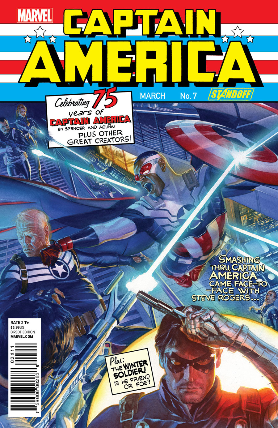 Em Captain America (vol. 7) 24, de 2014, Steve Rogers é desprovido do Soro do Supersoldado e envelhece para se tornar um ancião, então, cabe ao Falcão derrotar o vilão Arnim Zola. Na edição seguinte, há uma espécie de debate sobre quem deve ser o novo detentor do manto do Capitão, já que Rogers está incapacitado, e a honra recai sobre Sam Wilson.