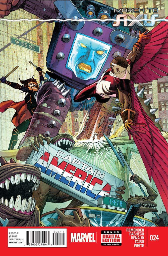 Tem-se início All-New Captain America 01, ainda por Rick Remender e com arte de Stuart Immonen, com Sam Wilson como o novo Capitão América, em histórias muito boas nas quais o autor explora a reação do público a um homem negro ocupando tal cargo, falando de racismo, intolerância e mais.