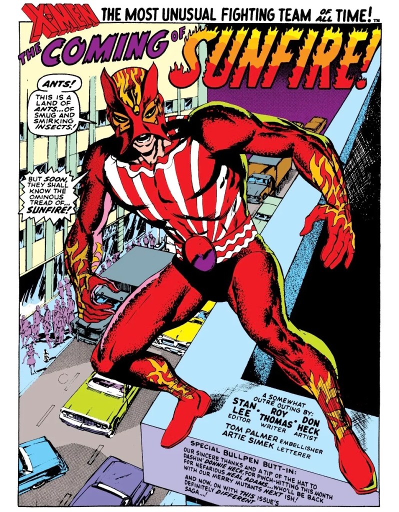 O japonês Solaris (Sunfire) foi outra adesão interessante de Thomas aos X-Men, tendo aparecido em X-Men 64, de 1970, numa das últimas histórias do grupo naquela fase. Porém, Thomas revela que queria ter introduzido o personagem muito antes disso, lá em 1965, quando assumiu o título.