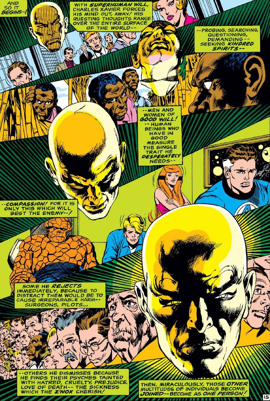 Eu não era um grande fã dos X-Men. Eu estava bastante feliz por ter saído da revista [em 1967] e era muito mais feliz fazendo os Vingadores [que começara a escrever em 1966 e ficaria até 1972, numa das melhores fases da equipe]. Mas Stan me convidou para vir [aos X-Men], porque as vendas tinham meio que despencado. Eu disse que eu não estava fazendo um grande trabalho, em primeiro lugar, mas Stan disse para que eu fizesse, e então, eu fiz. Então, eu comecei e fiz uma edição [o número 55]. Eu não estava feliz, estava de volta, mas realmente não sabia o que queria fazer. Eu estava herdando uma história, acho que [o roteirista] Arnold Drake tinha feito o irmão de Scott Summers, mas ele não tinha sequer dito se ele era um mutante ou não. Então, eu precisava lidar com tudo aquilo, e assim, Neal [Adams] apareceu.