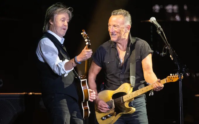 Ao sair aclamado, McCartney elogiou o colega da “costa oeste dos EUA” e anunciou um amigo da “costa leste”, subindo ao palco Bruce Springsteen, com quem McCartney já havia dividido o microfone em um dos shows da turnê nos EUA. A dupla apresentou Glory days (que é uma canção de Springsteen) e I wanna be your man, canção dos Beatles de 1963, que a dupla Lennon & McCartney deu de presente para os Rolling Stones e que o grupo de Jagger & Richards gravou e fez dela seu primeiro sucesso, tendo inclusive, a tocado recentemente em um concerto.