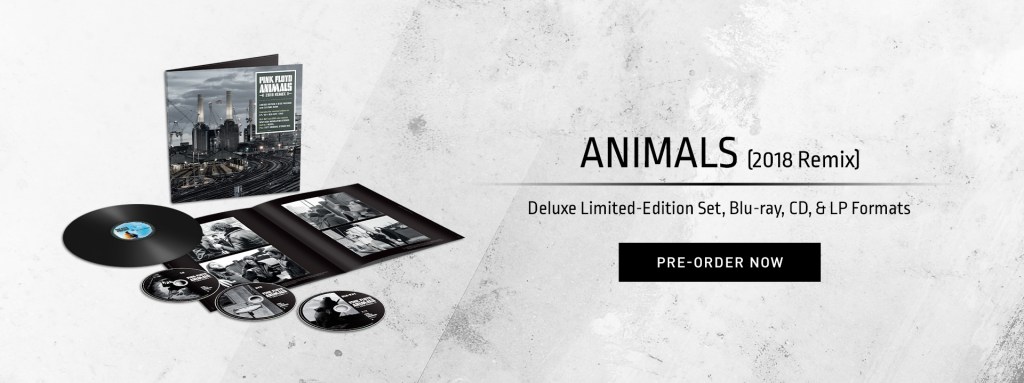 De qualquer modo, o novo Animals chegará em breve às lojas físicas e virtuais com uma nova mixagem criada por James Guthrie, engenheiro e produtor de som que trabalha com a banda há 40 anos, sob a supervisão de Gilmour. O pacote inclui um livro com 32 páginas cheias de textos e imagens inéditas tanto das gravações quanto da turnê que se seguiu, e da famosa sessão de fotografia da capa do disco.