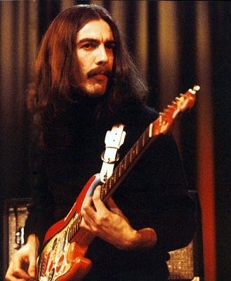 Harrison usou um grande número de guitarras em seus tempos de Beatles, de várias marcas, com destaque a Gretsch Country Gentleman, a Rickenbaker 360 de 12 cordas, a Gibson SG, Epiphone Cassino, Gibson Les Paul e a Fender Telecaster, sempre variando de modelo de disco para disco, em busca da melhor sonoridade e o timbre do momento; ao contrário dos colegas John Lennon e Paul McCartney, que ficaram mais fidelizados a um modelo específico, com a Rickenbaker 325 e, depois, a Epiphone Cassino, por parte do primeiro; e o Hofner 500/1 violin para o segundo.