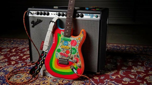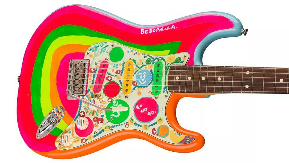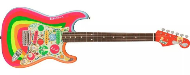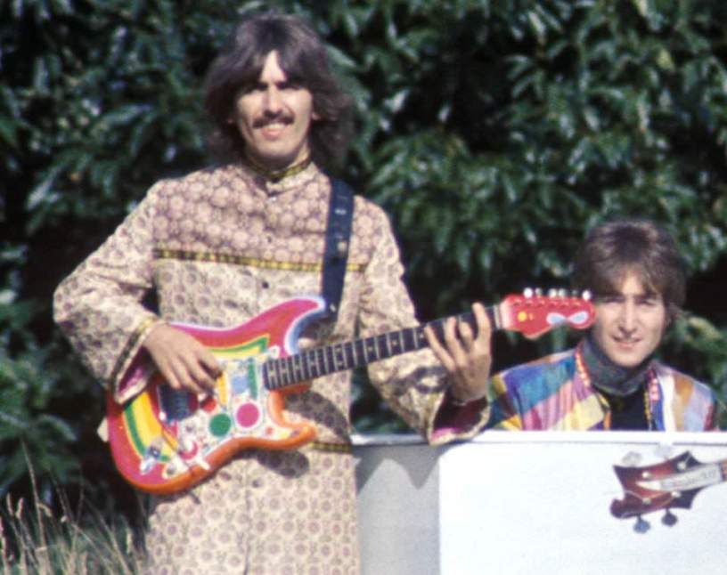 A fabricante de guitarras Fender lançou no mercado uma réplica da guitarra Stratocaster psicodélica usada por George Harrison nos Beatles. É a oportunidade para fãs endinheirados adquirirem um instrumento que reproduz exatamente o set up que o guitarrista usou.