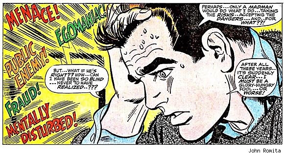 A revista Daredevil não era um dos maiores sucessos da Marvel e foi uma estratégia de caso pensado de Lee para que Romita “pegasse o jeito da coisa” dentro do estilo da casa antes de alçar voos maiores. E não precisou de muito tempo: no início de 1966, após uma “guerra fria” de alguns anos, o desenhista e roteirista do Homem-Aranha, Steve Ditko, decidiu deixar a Marvel, e coube a John Romita a tarefa de assumir um dos personagens mais populares da editora.