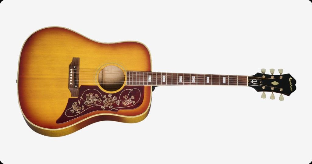O célebre violão 1962 Epiphone FT-79N Texan também está sendo relançado, um instrumento que ficou famoso como o preferido de Paul McCartney, dos Beatles, e que pode ser ouvido em clássicos como Yesterday e Blackbird. Seu valor é US$ 10 mil.
