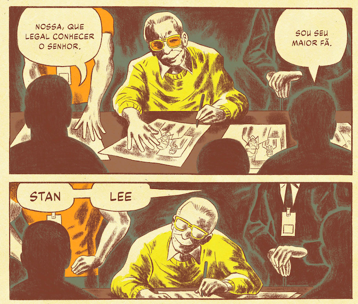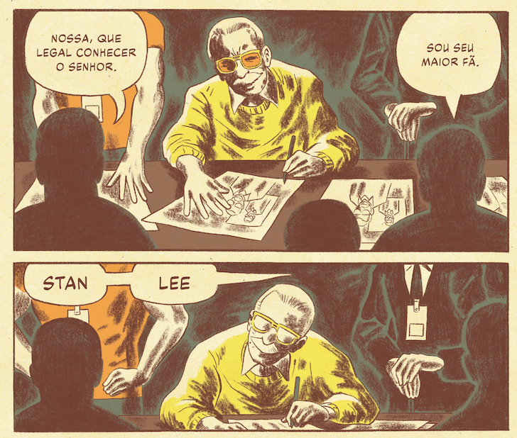 Há um contexto para a abordagem desse tema: Scioli escreveu anteriormente uma biografia em quadrinhos do “outro lado da moeda” da criação do Universo Marvel, o desenhista Jack Kirby. Tendo mergulhado na vida de Kirby, o “Rei dos Quadrinhos”, não há como não tocar no assunto da apropriação indébita de Stan Lee.