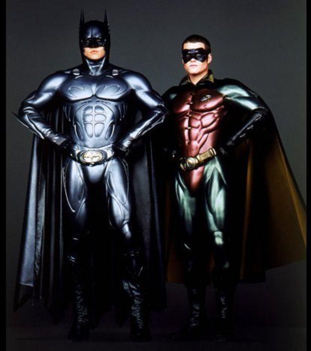 Forever inaugurou a tendência da franquia de apresentar um novo uniforme a cada filme, como maneira – sim esse era o motivo – de impulsionar a venda de brinquedos. Então, Val Kilmer iniciava o longa usando uma versão da Batsuit de Michael Keaton, mas na trama, Charada e Duas Caras invadiam a Batcaverna e explodiam tudo por lá, incluindo o novo Batmóvel (que não durou nem um filme completo) e as Batsuits, permitindo que Kilmer usasse uma nova roupa no 3º Ato, mais em acordo com aquela estreada pelo Robin de Chris O’Donnell.