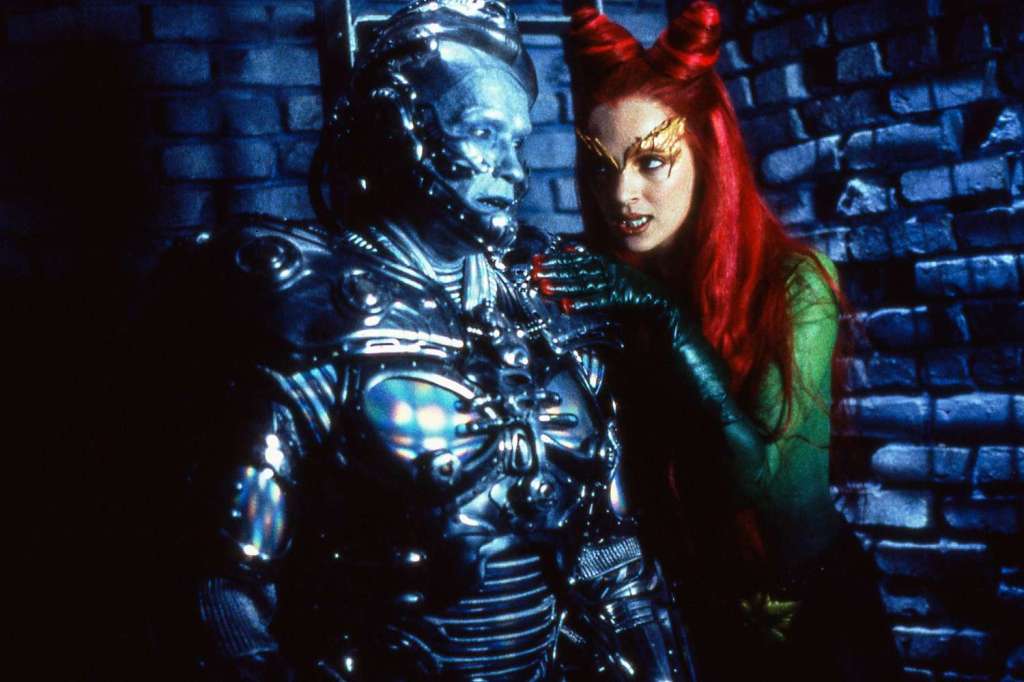 - Batman Forever. Dirigido por Joel Schumacher, com roteiro de Lee Batchler, Janet Scott-Batchler, Akiva Goldsman, e história de Lee Batchler, Janet Scott-Batchler. Elenco: Val Kilmer (Bruce Wayne/ Batman), Tommy Lee Jones (Harvey Dent/ Duas Caras), Jim Carrey (Edward Nygma/ Charada), Nicole Kidman (Dra. Meridian Chase), Chris O’Donnell (Dick Grayson/ Robin), Michael Gough (Alfred Pennyworth), Pat Hingle (Comissário Gordon), Drew Barrymore (Açúcar), Debi Mazar (Pimenta). 1995.