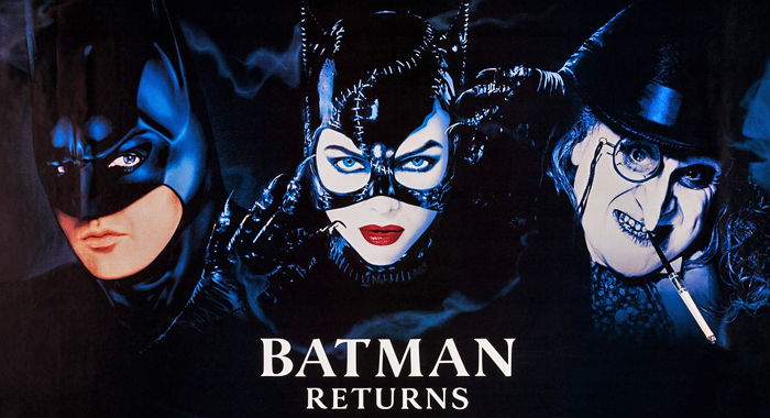 - Batman Return’s. Dirigido por Tim Burton, com roteiro de Daniel Waters e história de Sam Hamm e Daniel Waters. Elenco: Michael Keaton (Bruce Wayne/ Batman), Danny DeVito (Oswald Cobblepot/ Pinguim), Michelle Pfeiffer (Selina Kyle/ Mulher-Gato), Christopher Walken (Max Shreck), Michael Gough (Alfred Pennyworth), Pat Hingle (Comissário Gordon). 1992.