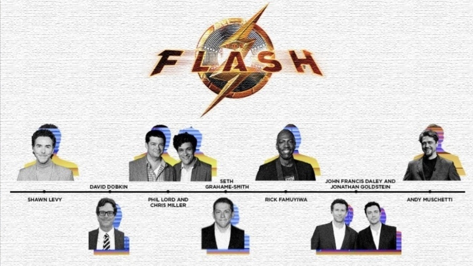 A dupla Phil Lord e Christopher Miller, famosos pelos filmes da Lego, foram contratados para escrever o roteiro de The Flash em abril de 2015 e tinha a prorrogativa de dirigi-lo, mas a dupla aceitou conduzir Solo – Um Filme de Star Wars (que, no fim das contas, seriam demitidos e substituídos por Ron Howard) e Seth Grahame-Smith (escritor de livros sobre zumbis de sucesso) foi contratado em outubro, e faria sua estreia como diretor com o longa a partir do roteiro deixado pela dupla. Por causa de sua inexperiência, foi assessorado por Jay Oliva (um artista de storyboards que havia dirigido a animação The Flashpoint Paradox, de 2013, que também adaptava a HQ) e o resultado agradou o suficiente o estúdio para que o longa ganhasse a data de estreia de março de 2018. Mas Grahame-Smith deixou o projeto em abril de 2016 e foi contratado o diretor Rick Famuyiwa, em junho, que entregou um novo roteiro em setembro e contratou Kiersey Clemons como Iris West e Billy Crudup como Henry Allen (e ambos gravaram cenas para Liga da Justiça, que estava sendo filmado), mas Famuyiwa também deixou o projeto no mês de outubro.