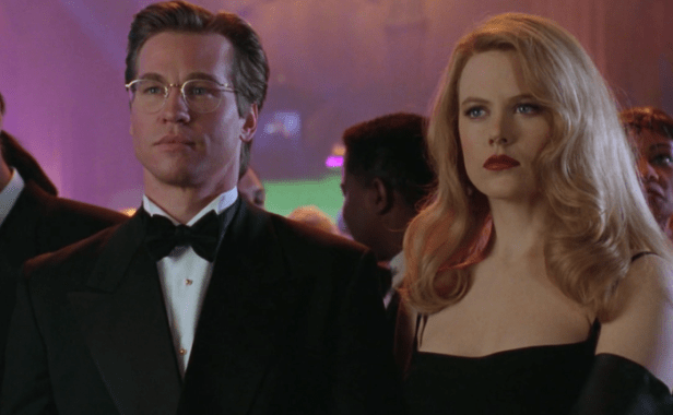- Há mais cenas entre Bruce Wayne e sua namorada psicóloga Chase Meridian, vivida por Nichole Kidman, o que torna o personagem de Val Kilmer mais dramático e atormentado, precisando lidar com o trauma de sua infância: a queda no poço que o levou a descobrir a Batcaverna e a ser atacado por o que parece um morcego gigante, e o fato disso servir de motivo para que seus pais o levem ao cinema na fatídica noite em que são assassinados, o que lhe enche de culpa, também.