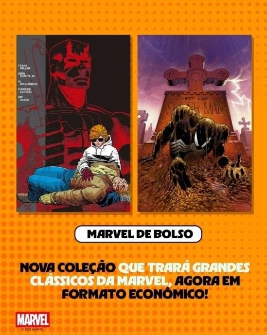 A Marvel de Bolso no Brasil será inaugurada com duas histórias clássicas que aparecem nas listas das melhores já publicadas: Demolidor: Homem sem Medo e Homem-Aranha: A Última Caçada de Kraven.