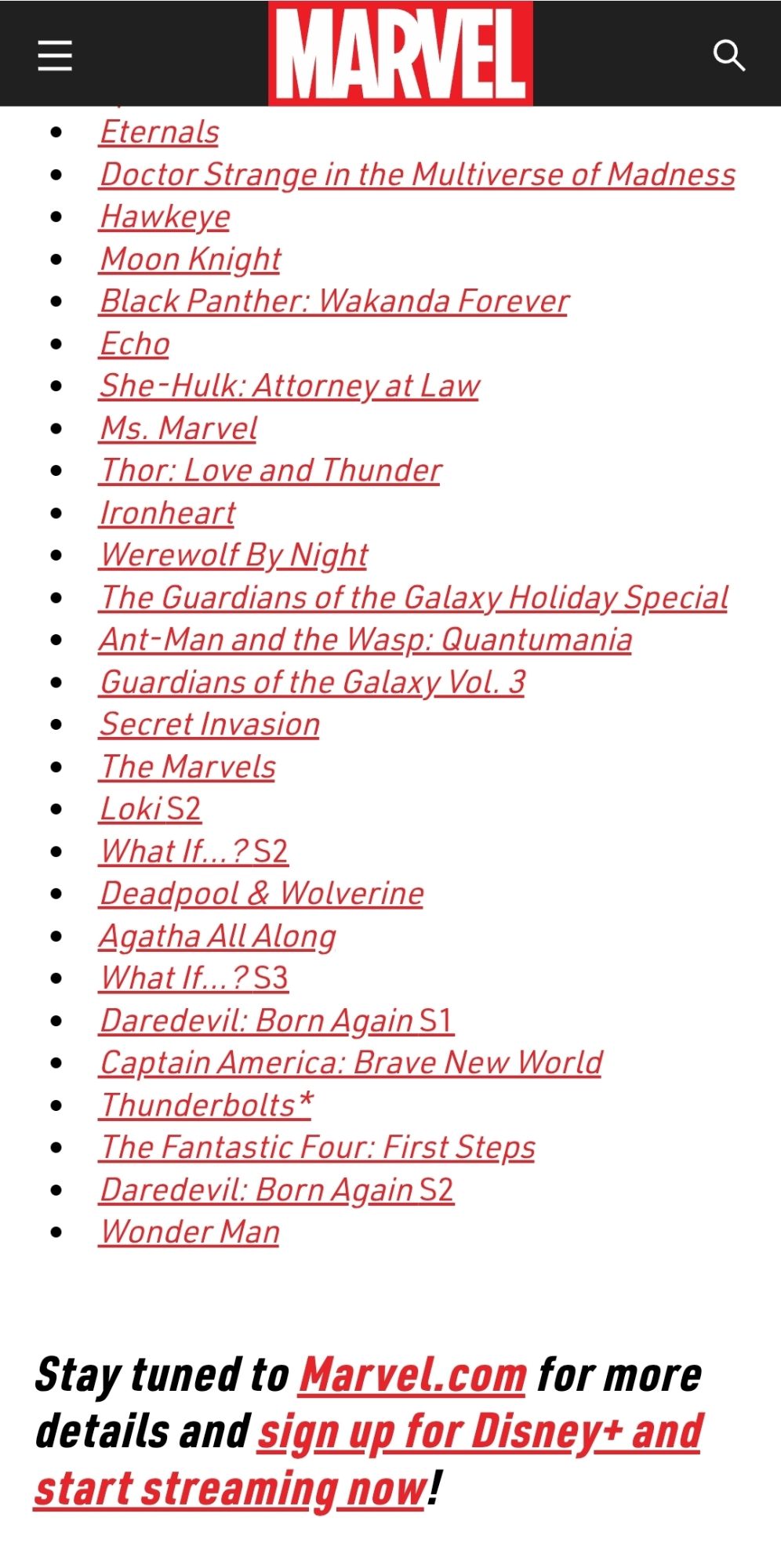 Pois bem… de acordo com a timeline oficial da Marvel, a 1ª Temporada de Demolidor vem após a segunda temporada de Loki, do filme Deadpool & Wolverine, da série Agatha All Along e do desenho What’s If… (temporada 3); seguida por Capitão América – Admirável Mundo Novo, Thunderbolts* e Quarteto Fantástico – Primeiros Passos, com a 2ª Temporada de Renascido vindo depois e fechando (até o momento) com Wonder Man (Magnum, no Brasil), outra série já lançada anteriormente.