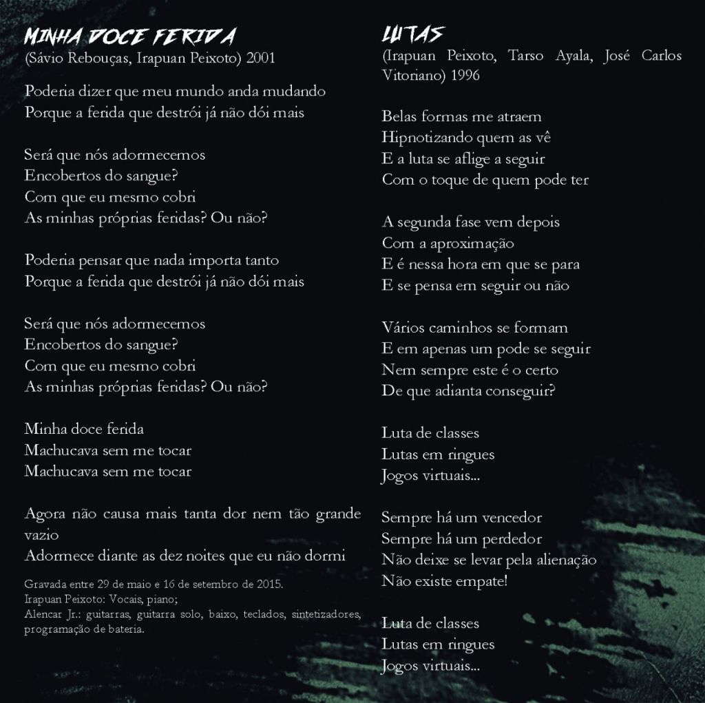 Embora eu já tivesse composto algumas canções antes, considero Lutas meu “marco zero” de composições profissionais, quando eu tinha 16 anos. Ela nasceu de um desafio juvenil: eu e meu colega de colégio, Tarso Ayala, nos desafiamos a cada um ir para casa e trazer uma música no dia seguinte, que serviria ao repertório da banda que queríamos montar. Minha contribuição foi Lutas. Escrevi a letra como uma crítica ao consumismo inspirada nas leituras de Karl Marx e criei uma harmonia simples, porque ainda estava aprendendo a tocar teclado (e eram acordes que eu também sabia no violão). O Tarso deu um acabamento mais polido à melodia e o Zé Carlos, outro membro da banda, teve a ideia da variação que surge no segundo estrofe e que deu mais dinâmica à canção. Nunca tive dúvidas de que esta canção estaria no primeiro álbum que gravasse. O Alencar Jr. pensa a letra como a angústia da saída da adolescência e os dilemas do início da vida adulta, o que faz todo o sentido, olhando em retrospecto.