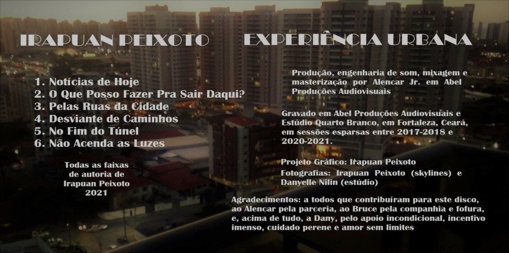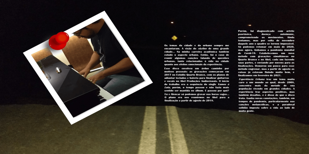 Os temas da cidade e do urbano sempre me encantaram. A visão do skyline de uma grande cidade… Na minha carreira acadêmica também estudo o aspecto urbano. Então, foi o caso de reunir algumas canções falando de questões urbanas, tanto relacionados à vida na cidade quanto aos efeitos emocionais da experiência.