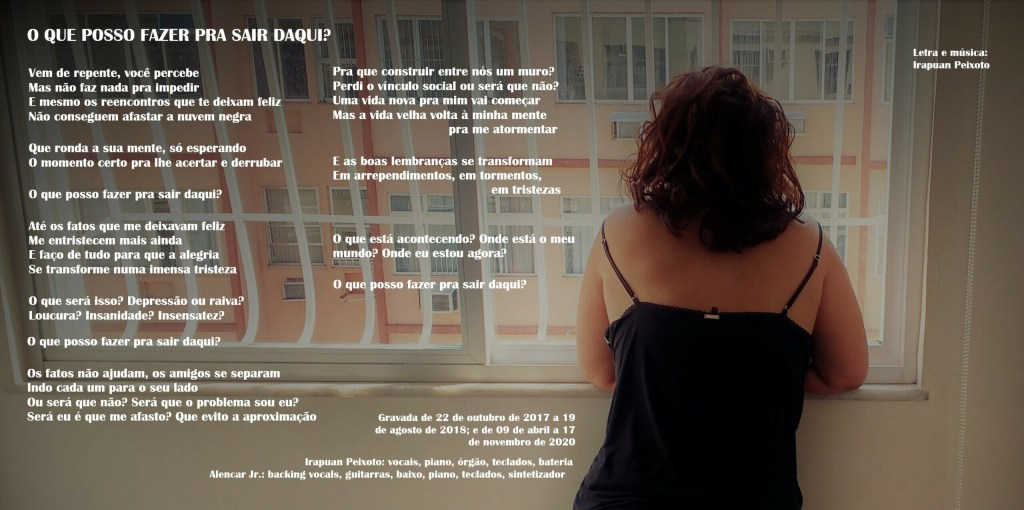 Esta canção também traz a carga emocional da vida urbana, sem desespero, mas com negação. Há uma tensão entre os elementos individuais e os estruturais na letra. A canção era uma peça de piano, mas depois, passei a tocá-la na guitarra distorcida, e apreciei o contraste de cantar algo tão triste e lento com um acompanhamento mais pesado. Por isso, para a gravação, optei por uma bateria bem reta para dar ênfase ao efeito. O bacana é que o Alencar criou essas guitarras maravilhosas e o solo que remete a David Gilmour. É dele também a ideia do sintetizador que fica modulando de modo mais nítido no início.